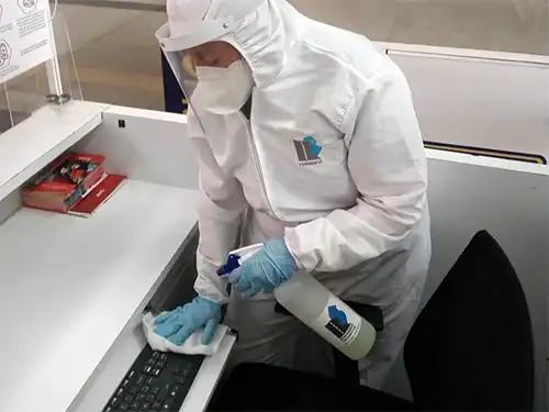 - Desinfecciones y sanitizaciones con protocolos trazables y químicos adecuados para cada superficie.